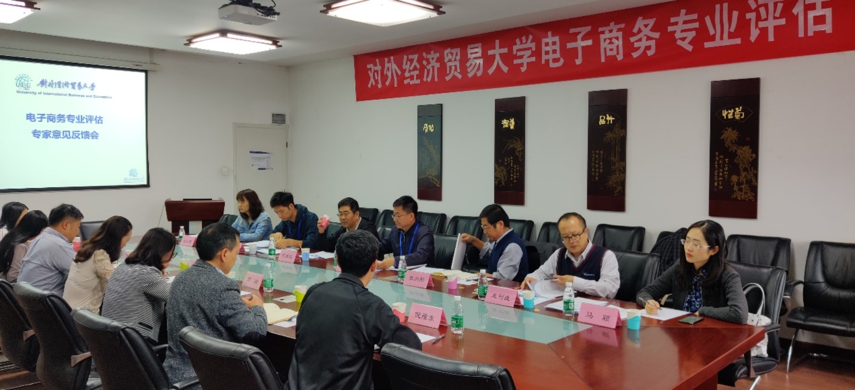 10月11日上午,电子商务专业本科校内专业评估专家意见反馈会于博学楼1416会议室顺利召开。专业评估小组全体专家参与本次会议并发表意见。对外经济贸易大学教务处副处长熊光清、蜜桃视频 党委书记高玲、倪耀东副院长、华迎副院长、电子商务专业系主任程絮森、评估秘书谭丽丽老师、评估秘书马颖老师,以及电商系教师参加本次会议。