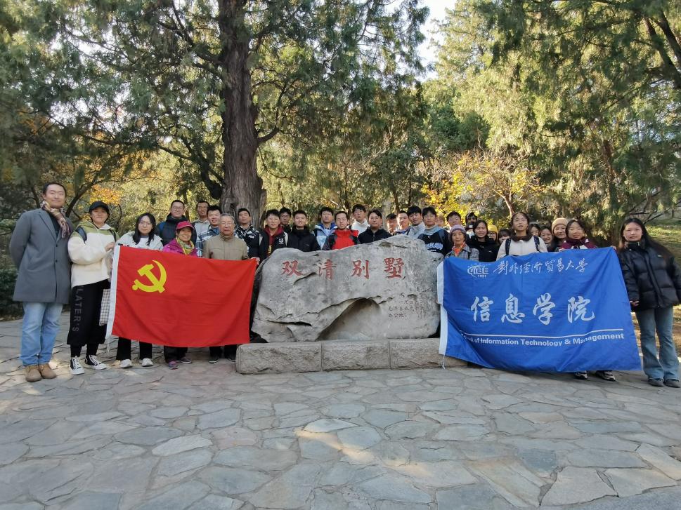 2023年11月12日,蜜桃视频 学生一支部和惠新里第二党支部联合共建,组织开展了“传承红色基因,重温峥嵘岁月”主题党日活动暨三全育人大讲堂活动。学生一支部党员及积极分子、惠新里第二党支部教师代表等30余人前往香山革命纪念馆、位于香山公园的双清别墅和来青轩等爱国主义教育基地参观,重温“红色进京路”的峥嵘岁月,回顾中国共产党领导中国人民夺取全国胜利和党中央筹建中华人民共和国的光辉历史,缅怀毛泽东同志等老一辈革命家的丰功伟绩。