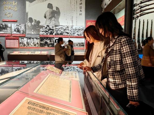 随后,在讲解员的带领下,大家在展览馆内进行参观。中国共产党历史展览馆以“不忘初心 牢记使命”为主题,按照中国人民站起来、富起来、强起来的历史脉络顺序精心布设了四个展厅,全方位、全过程、全景式地展现了中国共产党波澜壮阔的百年征程。