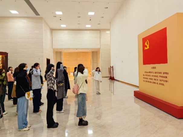 参观过程中,同学们被展览馆内的场景深深震撼。一幅幅珍贵的历史照片、一件件饱经沧桑的文物、一个个逼真的场景复原,生动展现了中国共产党波澜壮阔的百年征程。这些珍贵的文物、翔实的史料、生动的影像和逼真的景观,共同绘就了一幅中国共产党不懈奋斗、坚持理论探索、坚定为民造福的壮丽史诗。大家在参观过程中不时驻足观看,交流感悟,深刻体会到红色政权来之不易、新中国来之不易、中国特色社会主义来之不易。