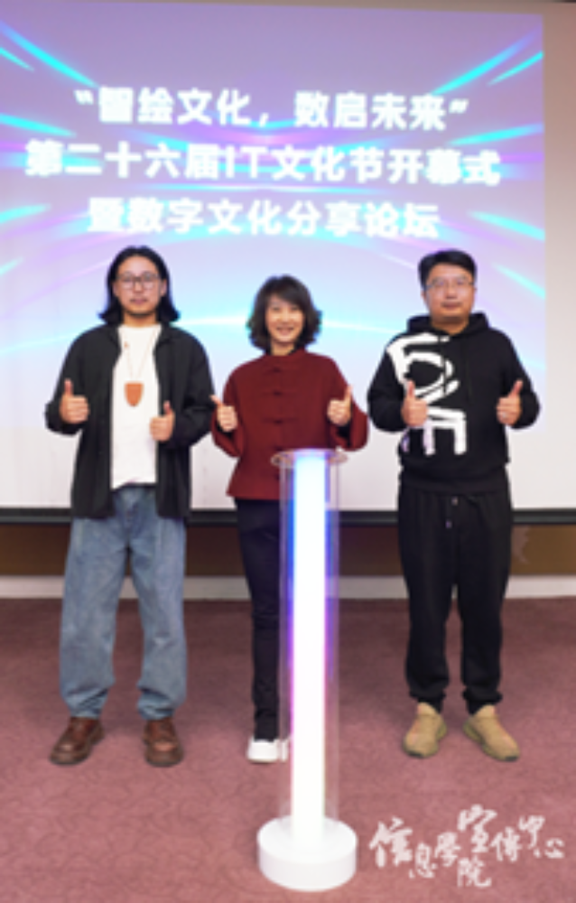伴随着第二轮问答的结束,第二十六届IT文化节开幕式暨数字文化分享论坛也迎来尾声。本次IT文化节增进了同学们对数字文化的认知与理解,让同学们深入了解数字化时代发展的趋势,感悟人工智能技术发展的迅速与对社会各类产业带来的深刻影响。作为新时代的贸大青年,我们应努力学习科学文化知识,积极提升科学素养,在技术变革的浪潮中抢抓先机,以科技力量赋能文化传播,为建设数字中国贡献青年力量!