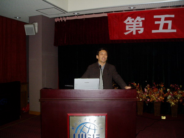 接着,马小斌先生带来的是“奥运会加速银行工厂发展进程”这一主题演讲。他利用图表给现场所有人上了一堂生动而形象的专业化的金融与信息课。他说明开放的银行业正面临诸多挑战:亟需不断提高管理水准、提供创新的产品和服务,应对不断变化的客户需求,合理利用不断发展和更新的技术等。奥运会的“催化剂”效应让电子银行业务向电子商务方向拓展,促使银行不断开发、提供更有价值的服务。因此,银行行业应当以电子银行业务发展模式为渠道、将业务和管理整合,为客户推出更加个性化、专业化、多元化、国际化的服务。同时,他在个人未来发展规划和能力培养等方面给同学们提出一些颇有帮助建议。
