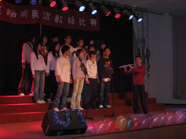 团总支“红色先锋月”系列活动之一的“唱响奥运”主题歌咏比赛于4月25日晚在校大学生活动中心拉开帷幕。