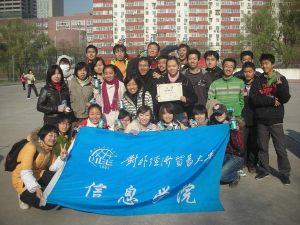 2009年趣味体育节。本次趣味体育节旨在增强同学们的体质,让大家在寒冷的冬日里也能积极参加体育活动,积极与甲流等疾病做斗争,11月21日上午9:30,趣味体育节在一片欢欣热闹的氛围中拉开了帷幕。 活动以班为单位,各班派出选手参加各项比赛,按照比赛成绩积分,最终累积积分高者获胜。第一项比赛是“五人六足”,即五名选手的脚两两绑在一起,五人同时前进,到达终点所用时间最短的班级获胜。一条红丝带,成为大家前行的障碍,同时也是将大家连在一起的纽带。第一轮对决在大一信管一班与大二信管一班之间展开。哨声一响,两队同时出发,你争我赶,不甘落后。大一的同学们喊着口号,踏着整齐的步伐,渐渐超越对手,并且将差距越拉越大,率先抵达终点,而大二的学长学姐们虽然也是步履整齐,口号响亮,但最终略逊一筹,第二个冲过终点。之后的3轮比赛同样也是精彩纷呈,各班队员齐心协力,争取为本班夺得荣誉。