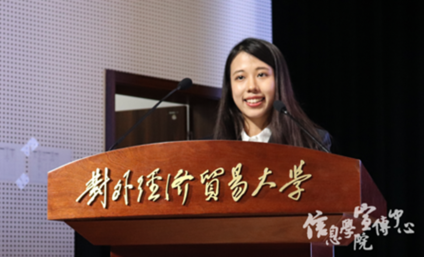 研究生新生代表严铖钦同学回顾了自己的本科经历,在大学生活中觅得良师益友,不断自我超越,在学生工作与志愿支教中磨练了自己的意志,并从支教经历中明白了言传身教、育人为本的意义。展望未来,她希望能与同学们一同面对挑战,脚踏实地,为科研做贡献,担当时代使命。