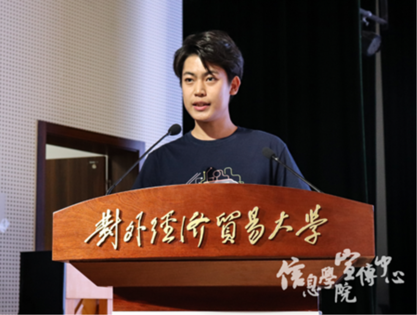 本科新生代表李子轩随后发言。他回顾了中学时期的探索和学习,并以三句话与大家共勉:“路漫漫其修远兮,吾将上下而求索”,勉励同学们肩负使命,勇敢迈出舒适圈;“千淘万漉虽辛苦,吹尽狂沙始到金”,提醒大家不忘初心,踏实走好每一步;“博学诚信,求索笃行”,鼓励同学们锐意进取,成为最优秀的自己。