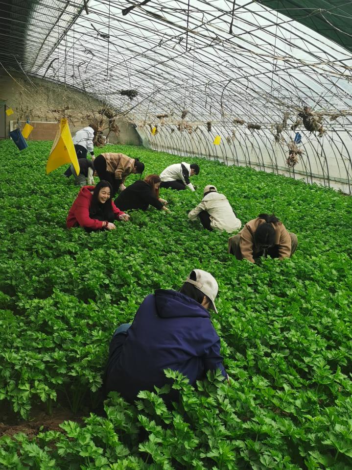 在这次劳动教育活动中,同学们分成两组分别进入芹菜种植地和西红柿大棚,积极投入农事劳作,争做劳动先锋,以劳动实践浇灌青春奋斗之花。在芹菜地,大家认真听从工作人员的指导,明确分工、互相帮助,积极学习如何正确认识杂草,高质高效地完成芹菜地杂草清理任务。随着杂草的不断清理,一棵棵嫩绿的芹菜苗逐渐显露出茁壮的生长态势在西红柿大棚,同学们同样有条不紊地投入到劳动实践中,以躬身实践展示新时代蜜桃视频 的青年风采。
