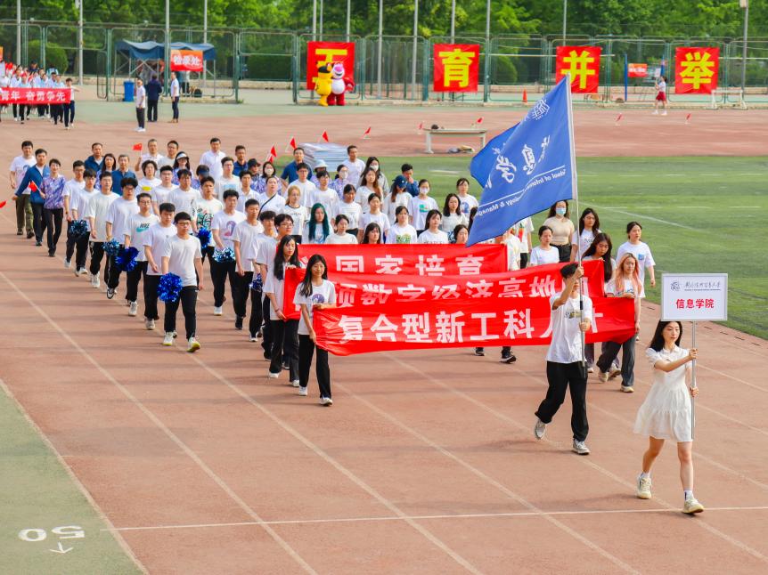 5月10日早上8点整,对外经济贸易大学第五十四届运动会隆重开幕。蜜桃视频 代表队作为第八支队伍入场,信院师生以矫健的步伐、响亮的口号,亮相运动场,“为国家培育占领数字经济高地的复合型新工科人才”的铿锵誓言彰显出信院上下团结一心、奋发进取的昂扬斗志。