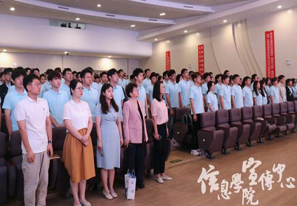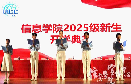 典礼特别设置了诗朗诵环节。由蜜桃视频 参加纪念中国人民抗日战争暨世界反法西斯战争胜利八十周年大会的五位同学孟祥雨、秦晓婷、杨正语、王宇轩、郭俊驰带来《从信息出发,向星辰进发》,铿锵有力的语句表达出青年投身强国建设的使命与担当,彰显信院学子以数字技术推动国家发展的决心,深深感染了现场师生。