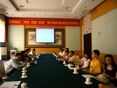 自2009年7月以来,在教务处的大力支持下,竞赛组委会有关人员积极开展“三创赛”校内外的宣传、联络、组织和服务工作:竞赛组委会开设了专门的联系邮箱,承担起北京地区各高校的联系沟通工作;在校内各大教学楼和学生宿舍楼张贴“三创赛”宣传海报,鼓励学生踊跃报名参赛。9月4日,竞赛组委会组织召开了“三创赛”北京赛区高校信息交流会,中国电子商务协会代表、企业代表以及北京赛区11所院校代表参加了会议,传达大赛组委会的工作安排,安排北京赛区的竞赛议程。