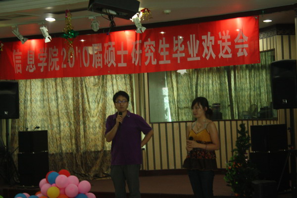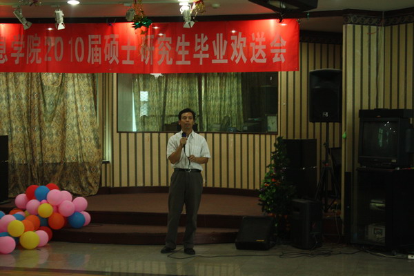 09级研究生代表全体师弟师妹祝贺师兄师姐顺利毕业,表达以师兄师姐为榜样努力学习的决心,祝福他们在新的征程上前途似锦一帆风顺!