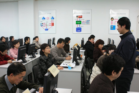 李降龙和徐嘉震老师向与会领导和教师展示了 “企业级数据库”和“ERP与供应链管理与实践(SAP/ERP)”两门实验课程。两位老师分别从课程结构设计、课程特点以及实验项目的设计等方面展示了自身勤奋敬业以及十分娴熟的教学方法,体现了两位老师在实验教学发面的造诣和研究成果。