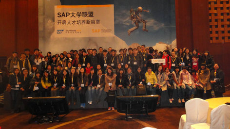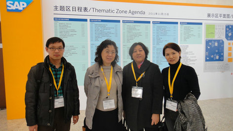 09级本科生和11级研究生一行参加了于国家会议中心举行的SAP中国商业同略会暨全球技术研发者大会。一天的会议行程中,同学们聆听了海尔集团创始人张瑞敏先生和SAP联席创始人哈索博士的主题演讲,并了解了包括SAP、SUMSUNG、德勤、惠普等公司在内的大学联盟或招聘计划。此次活动由SAP大学联盟在我院的联系人刘瑞林老师组织,吴梅梅老师、王朝培老师、秦东方老师与同学一同参加活动。