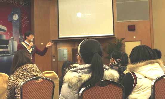 的教育,使旅途变得丰富多彩。愉快的心情似乎缩短了路程,平时拥堵的四环似乎为我们畅通,经过近50分钟的车程,队伍到达目的地──位于亦庄荣华中路的中国国际电子商务中心。汽车缓缓驶入停车场,下车后首先映入眼帘的是装修豪华的五星级大酒店──锦江国际大酒店,中国国际电子商务中心的巨幅大牌就屹立在锦江大酒店的楼顶。欣赏完大楼的美景后,同学们在工作人员引导下来到了一楼多功能大厅,中心接待人员就中心情况作了简短的介绍后,中心张大明副主任在百忙之中抽身出来为大家作了精彩的报告。为了准备好这次报告,张主任亲自收集有关资料,准备报告。