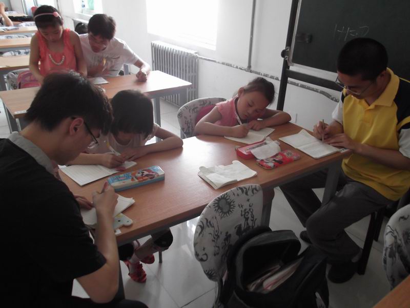 点半到5点半是辅导时间,大部分学生都在做作业,有不懂的志愿者就会加以辅导,整个过程和谐而安静。在教导过程中也遇到了不小的麻烦,有些一年级学生学习能力有限,志愿者们不知道用什么样的语言能让他们能明白。有的学生耐性不足,管不住自己,经常开小差。好友的学生没有养成细心的习惯,做题常常出错,但在指出之后又能迅速改正。根据学习的程度不同,志愿者分别对各年级学生出一些附加题以提高学生的思维能力。