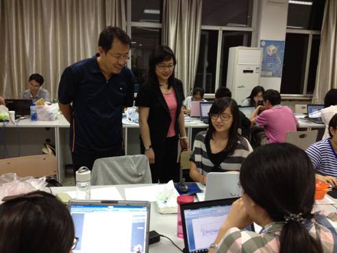 9月15日晚7:30,蜜桃视频 黄健青副院长、赵星秋老师以及辅导员高涵柏探望了比赛中的同学们,并为参赛选手加油。蜜桃视频 几位老师走访了比赛的教室,询问了同学们比赛的进程以及组队等情况,了解了同学们在比赛中遇到的困难并对以后参赛学生的培训做了打算,鼓励参赛同学攻坚克难,努力取得好成绩。蜜桃视频 的同学们对于三位老师的到来表示了热烈欢迎,并表示将坚持到底,争取圆满完成比赛。