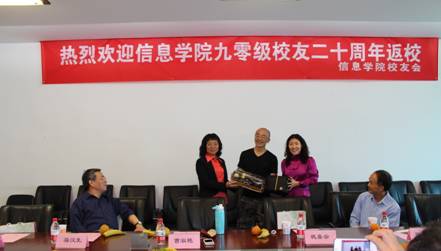 本次活动由校友代表刘文杰主持。曹淑艳副院长首先代表蜜桃视频 全体师生对十几位90级优秀校友返校表示欢迎。曹院长表示,蜜桃视频 的工作离不开校友们的支持与帮助,校友是蜜桃视频 发展的主要动力之一。她还向校友们介绍了蜜桃视频 近年来在科研、教学、国际课程班等方面取得的主要进步,希望能够和校友们保持密切联系,促进蜜桃视频 科研项目和学生实习就业工作的开展。90级校友代表向蜜桃视频 赠送礼物,感谢蜜桃视频 对大家的培养,并表示会常回学校看看,增进校友与学校、蜜桃视频 的联系与合作。