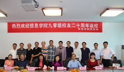 2014年5月17日,蜜桃视频 在博学楼1415会议室举办了“90级校友毕业20周年返校”活动。本次联谊会以“二十载后重聚首,共赴母院叙离情”为主题,吸引了90级的十几位国内外优秀校友参加。院领导巩喜云书记、曹淑艳副院长以及教师代表参加了返校活动。
