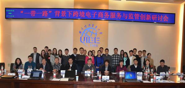 为配合对外经济贸易大学协同创新中心“中国企业走出去”建设任务实施、凝练蜜桃视频 研究方向,由蜜桃视频 主办、对外经济贸易大学电子商务研究所承办的《²一带一路²背景下跨境电子商务的创新服务与监管》研讨会于2015年1月10日上午8:30在对外经济贸易大学行政楼222会议室举行,对外经济贸易大学副校长林桂军教授莅临研讨会,并进行主题发言。会议还邀请了商务部电子商务与信息化司、中国电子商务创新推进联盟、中国电子商务协会、中科院计算所、有关商业银行等领导和专家前来指导。