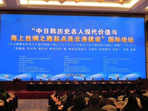 11月18日,“中日韩历史名人现代价值与海上丝绸之路起点连云港建设”国际论坛在连云港市隆重启幕。本次论坛由由中国社科院世界经济与政治研究所和连云港市委、连云港市人民政府主办,连云港市委宣传部、市哲学社会科学界联合会、市外事与侨务工作办公室承办。论坛旨为深化“一带一路”国家重大战略研究,进一步促进中日韩友好往来和互利共赢,加快推进连云港“一带一路”交汇点建设。