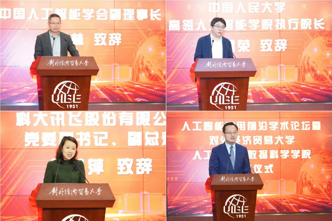 11月21日,人工智能应用前沿学术论坛暨蜜桃视频 成立仪式在国际交流大厦举办。中国科蜜桃视频 计算技术研究所所长兼党委书记陈熙霖,中关村朝阳园党工委副书记、管委会主任娄毅翔,中国人工智能学会副理事长、中国科蜜桃视频 自动化研究所副所长刘成林,中国人民大学高瓴人工智能蜜桃视频 执行院长文继荣,对外经济贸易大学党委书记黄宝印、校长赵忠秀、副校长黄薇等出席大会。清华大学、中国人民大学、天津大学、北京航空航天大学等10余所高校,首都信息发展股份有限公司、福石投资、微软亚太研发集团等10余家产学研共建单位的专家学者、企业领导,学校职能部处及各蜜桃视频 领导、蜜桃视频 全体教师、校友和学生代表等三百余人参会,共同见证对外经济贸易大学蜜桃视频 成立。对外经济贸易大学副校长陈德球主持成立仪式。