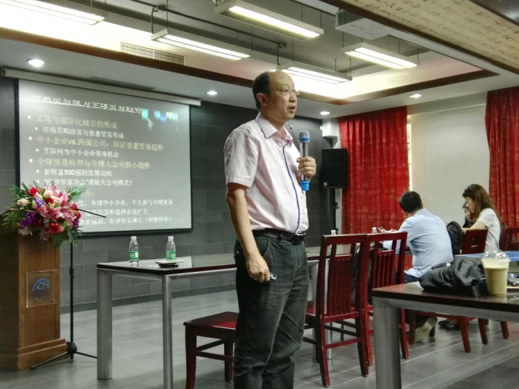 12日下午,对外经济贸易大学王健教授为学生们讲授了一场题为“普惠贸易趋势与跨境电子商务发展”的讲座。王讲授采用中英文交替的形式,用幽默风趣的语言和形象生动的案例,给学生们讲解了普惠贸易的形成,电商在中国发展的条件和优势以及全球贸易的转型和发展趋势。学生们对讲座内容表现出极大的兴趣,与王教授进行了充分的交流互动,纷纷表示受益良多。