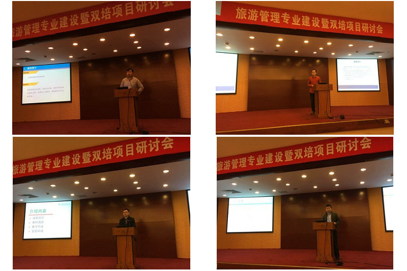 四位专业课教师:程絮森、李亮、黄浩和屈启兴老师分别对信息技术旅游创新、IT战略与企业竞争优势、旅游大数据分析和旅游目的地管理四门专业核心课程,从课程培养目标、培养方式、教学内容等方面为大家进行了精彩的展示。此外,2015级双培生学生代表宋金龙同学也对双培班过去一年参加的社会调研与实践活动进行了汇报总结。之后全体老师对于专业建设和双培项目核心问题进行了分组讨论,并进行总结交流。