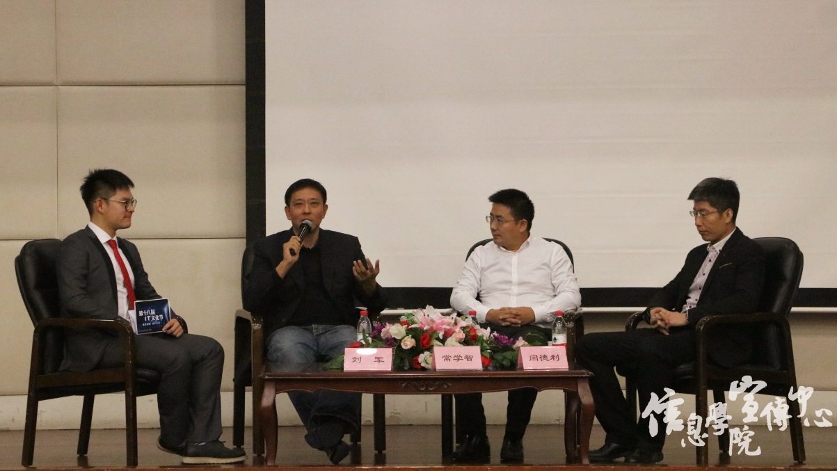 本届IT文化节开幕式暨电子商务创新发展论坛有幸邀请到前联想副总裁、现和顺资本董事长刘军先生,北京市电子商务投资有限公司副总经理常学智先生和京东战略研究院闫德利先生作为嘉宾,共同畅谈电商未来之路。同学们通过与IT界领军人物面对面交流,深切感受到了互联网时代跳动的脉搏。
