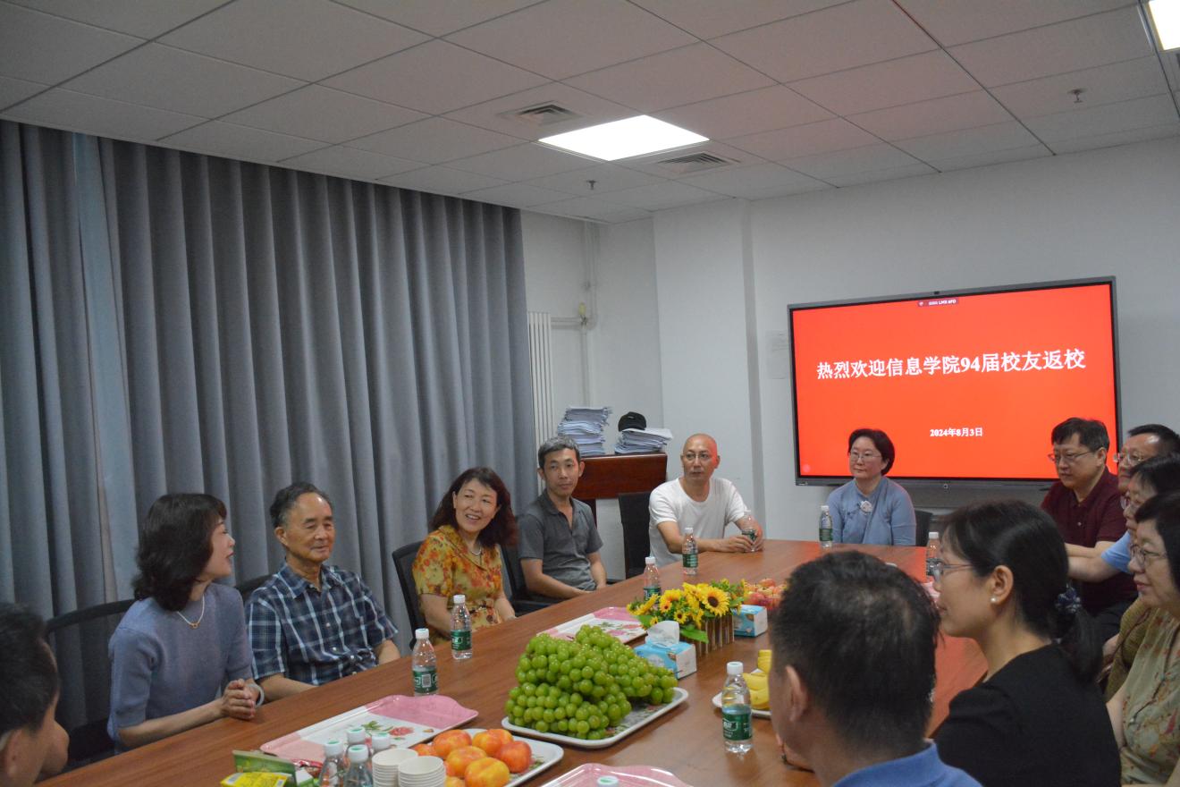 2024年8月3日,蜜桃视频 迎来了一群特殊的访客——94届校友。各位校友踏着熟悉的校园小道,带着对母校深深的眷恋和对同窗情谊的怀念,重返这个曾经共同学习和成长的地方。蜜桃视频 原党委书记、94届本科生辅导员巩喜云,蜜桃视频 退休教师陈恭和,统计蜜桃视频 教授郝素敏,蜜桃视频 党委书记梁伟,副院长倪耀东,副书记张旭路热情接待了这些校友,并组织了一场内容丰富的座谈会以及人工智能实验室的参观活动。
