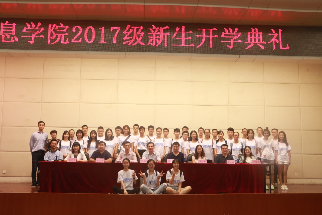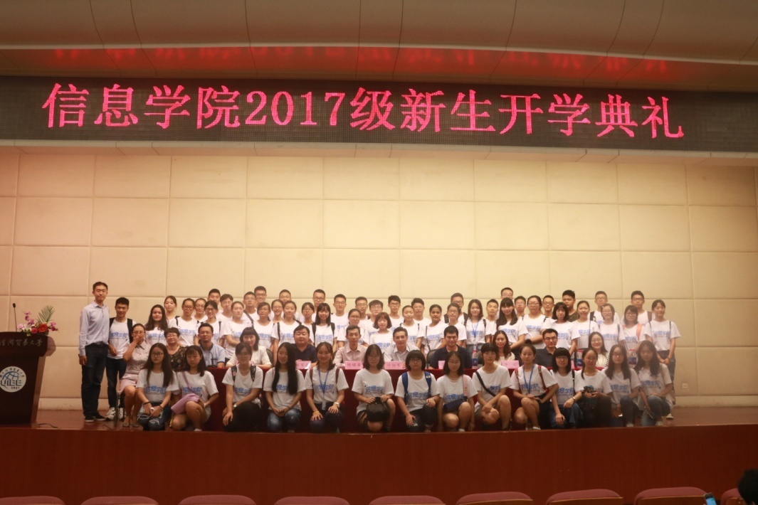 院长冷柏军、分党委书记李兵、分党委副书记张志娟、副院长倪耀东、副院长华迎、电子商务系主任程絮森、信管系主任于晓丹、大数据科学与技术系主任黄浩、2016级辅导员叶潇舟、研究生辅导员张延红、2017级辅导员黄伟钊、2017级新生班主任王晓波老师、杨向峰老师。参与开学典礼的还有2017级本、硕、博以及国际课程班新生。本次大会由分党委副书记张志娟主持。