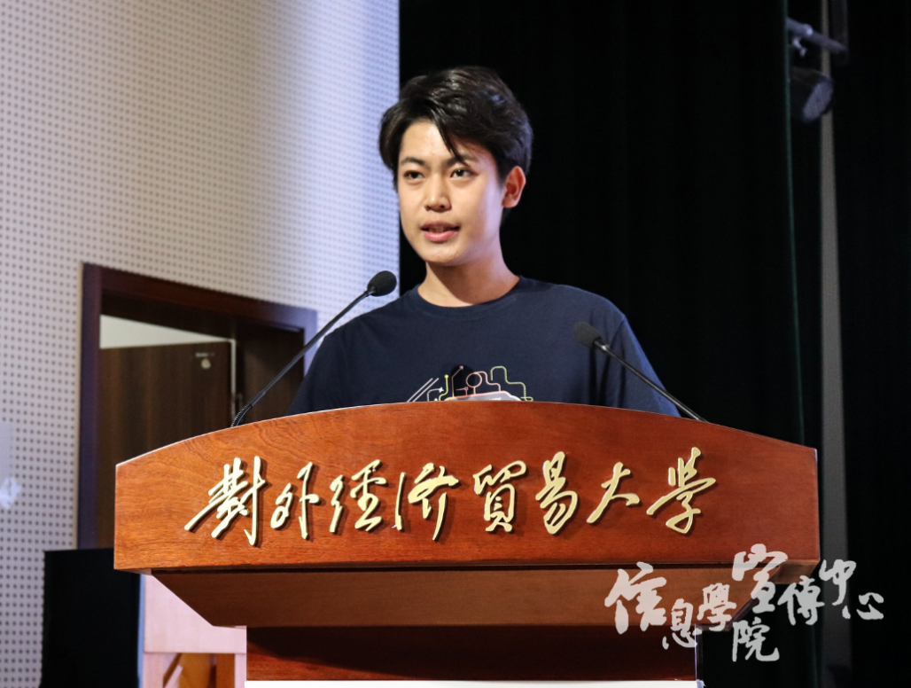 本科新生代表李子轩随后发言。他回顾了中学时期的探索和学习,并以三句话与大家共勉:“路漫漫其修远兮,吾将上下而求索”,勉励同学们肩负使命,勇敢迈出舒适圈;“千淘万漉虽辛苦,吹尽狂沙始到金”,提醒大家不忘初心,踏实走好每一步;“博学诚信,求索笃行”,鼓励同学们锐意进取,成为最优秀的自己。