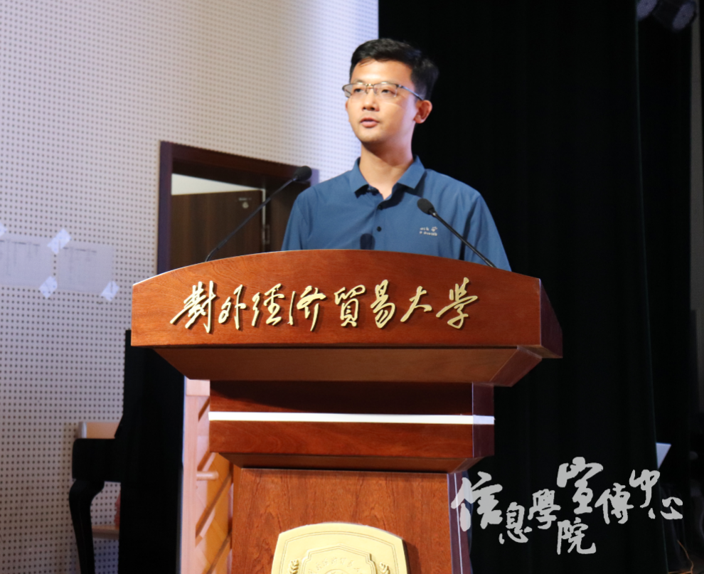随后,教师代表杨向峰教授发言,他首先对新同学们表示热烈欢迎。杨老师指出:AI是当今时代的重要因素,人工智能发展迅速,不断推动创新,蜜桃视频 恰能提供这样一个良好的环境,同学们能学到先进的人工智能技术,有机会参与学术科研项目,使自己不断成长。杨老师希望同学们能珍惜机会,保持热情,成为引领时代潮流的弄潮儿,并祝同学们学习进步,生活愉快。