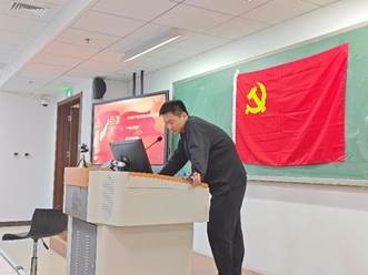 陈露琪对各组的学习成果进行了总结,并播放党纪党规宣传警示片,通过蒋铮和王祥贪污受贿的反面案例为学生们展示了《条例》对于违法犯纪行为的坚决抵制,为学生们敲响警钟,使学生们认识到遵守纪律的重要性,加强“守纪立规,筑牢党性之魂”的思想意识,并将其铭记于心。