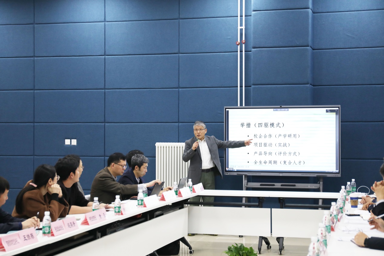 熊璋院长介绍了人工智能创新创业试验班的情况。试验班推行一个中国信创产品为基础、二种学科深度融合、“本-硕-博”三层培养覆盖和四方导师组团的“一二三四架构”,通过校企合作的方式,以解决企业实际需求为目标,采用项目制以产品开发全生命周期为导向,开展复合人才培养,为企业提供急需的人力资源,探索出人工智能+教育的贸大模式。通过试验班的培养,学生不仅能在国际标准化竞赛中开拓创新,还能够研发出实际的产品,接受市场的检验,获得创业投资。