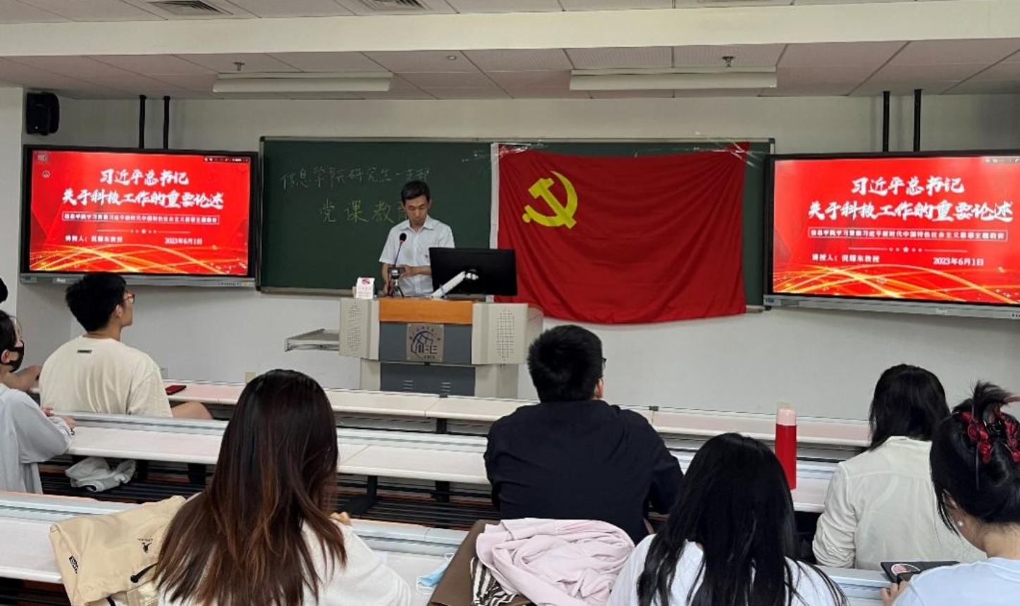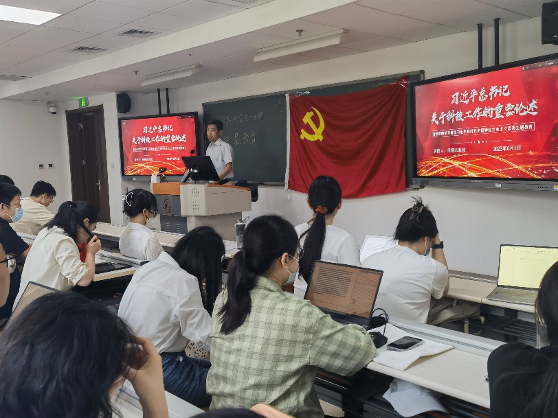 为扎实推动学习贯彻习近平新时代中国特色社会主义思想主题教育走深走实,贯彻落实“学思想、强党性、重实践、建新功”的总要求,6月1日16:00,蜜桃视频 副院长倪耀东讲授专题党课《习近平总书记关于科技工作的重要论述》,蜜桃视频 研究生一支部全体党员和积极分子参与学习。