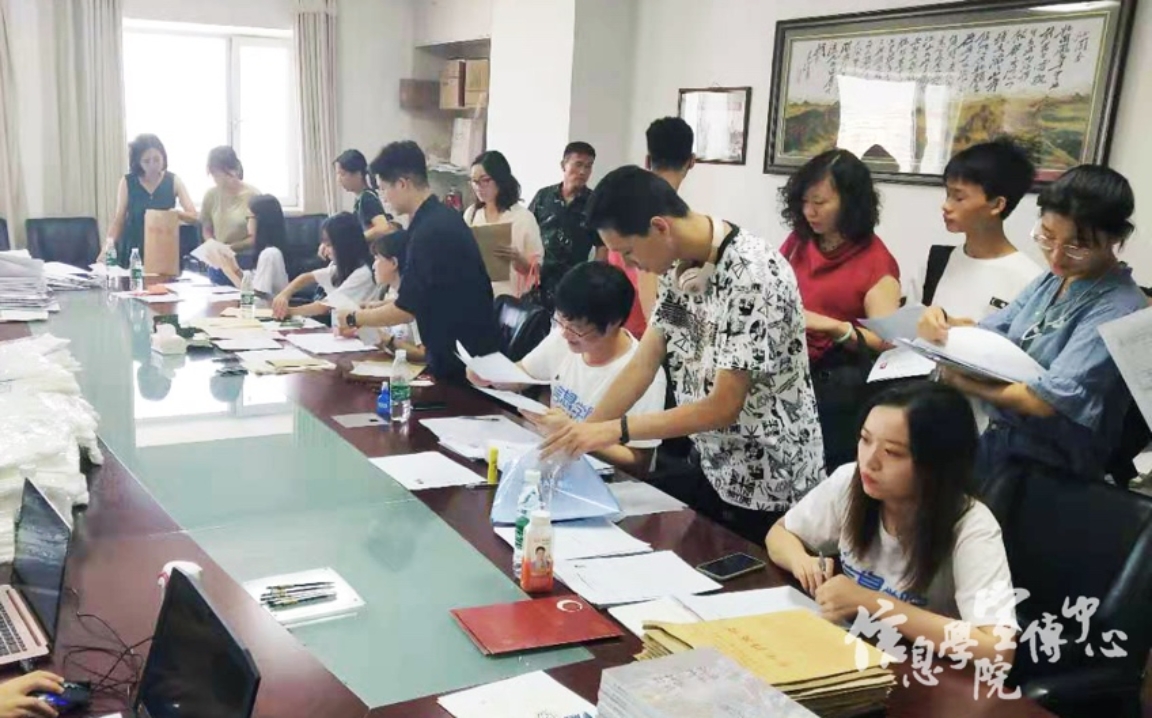 在迎新前,蜜桃视频 领导及团学联在各方面做了精心的统一部署,以保证整个迎新工作得以顺利进行。为了确保整个迎新过程的顺利进行,本次迎新共设立了两个会场,一是在诚信楼前,主要负责新生的信息核对、签到和拍照录像留念环节;另一个在博学楼1416教室,主要负责材料的收发、入学物资的发放。