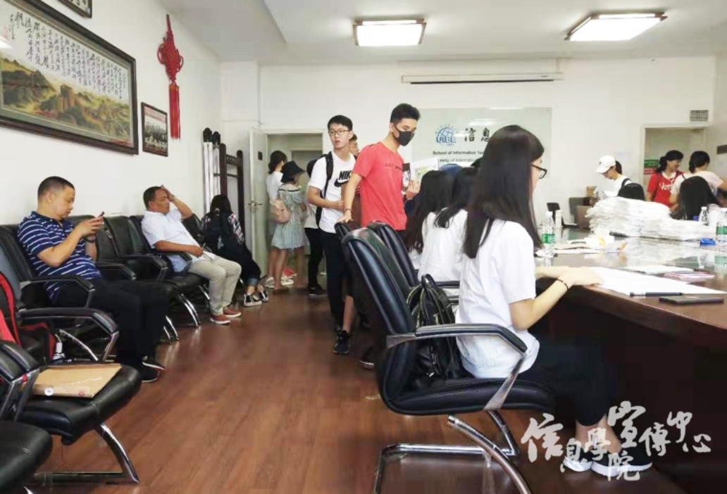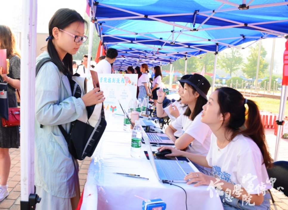 精心布置的报到现场,诚信楼前高高飘扬的院旗,阵阵威武响亮的鼓声,处处彰显着信院迎新的激情。蜜桃视频 院长冷柏军,分党委书记高玲,副院长倪耀东,分党委副书记张旭路,2019级新生辅导员、分团委书记黄伟钊老师也早早到达迎新现场,指导迎新工作。