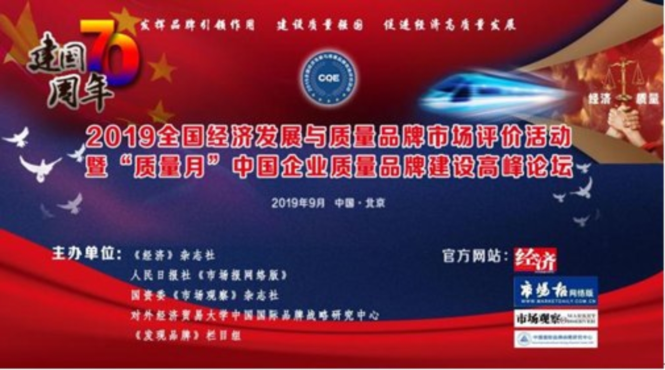 9月17至18日,《经济》杂志社、人民日报社《市场报网络版》、《市场观察》杂志社、对外经济贸易大学中国国际品牌战略研究中心与《发现品牌栏目组》等单位联合主办的2019全国经济发展与质量品牌市场评价活动暨“质量月”中国企业质量品牌建设高峰论坛在北京钓鱼台国宾馆和中国职工之家召开。