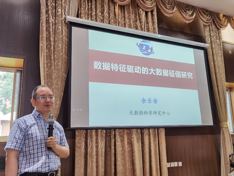 余乐安教授作了题为“数据特征驱动的大数据征信研究”的主题报告。余教授首先从移动互联网的三大战场讲起,并从国家角度分析了对信用的重视程度,介绍了大数据征信的研究背景和相关技术原理。然后,在大量真心研究方法的基础上,重点讲述了信用数据的特征识别方式和解决方案。最后,介绍了数据特征驱动的大数据征信技术的典型应用及最新的研究进展,并对未来中国社会征信管理模式等进行了展望。