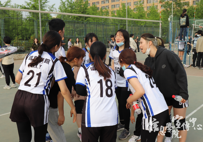 2021年4月22日16:45,蜜桃视频 女排对阵法蜜桃视频 的比赛正式拉开了帷幕。天气刚刚放晴,地面仍有部分积水,放晴后的太阳直射有些刺眼,可这并没有动摇信院女排拿下第一局比赛的信心。
