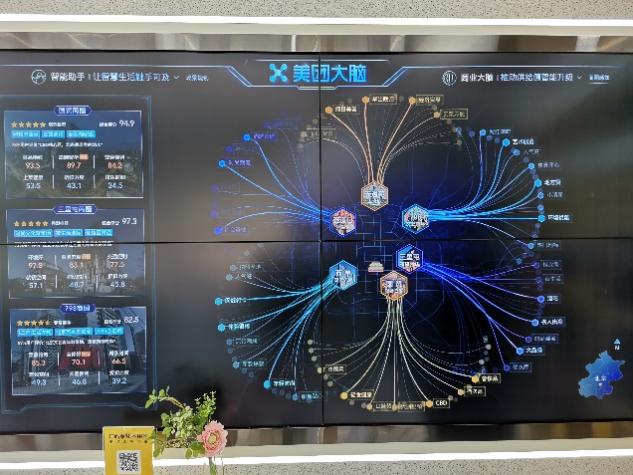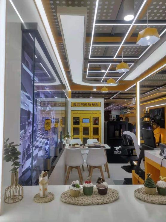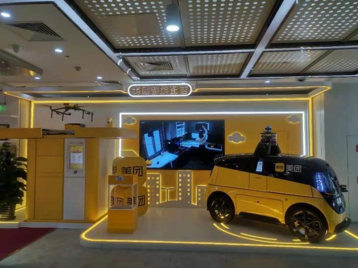 在下一个参观区域,讲解员展示了美团的无人机、无人车等智能配送系统、智能取餐柜、数字化餐厅、数字化酒店、数字化商店、共享出行、数字化景区等新颖的科技成果,以及未来我们可能看到的更加智能化的应用场景。