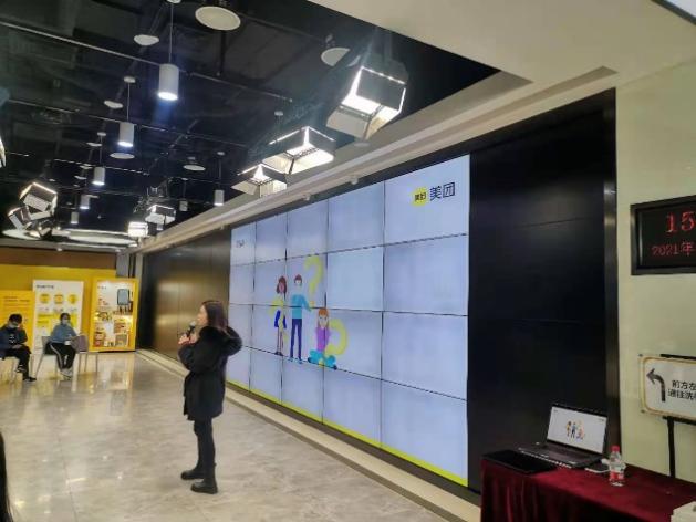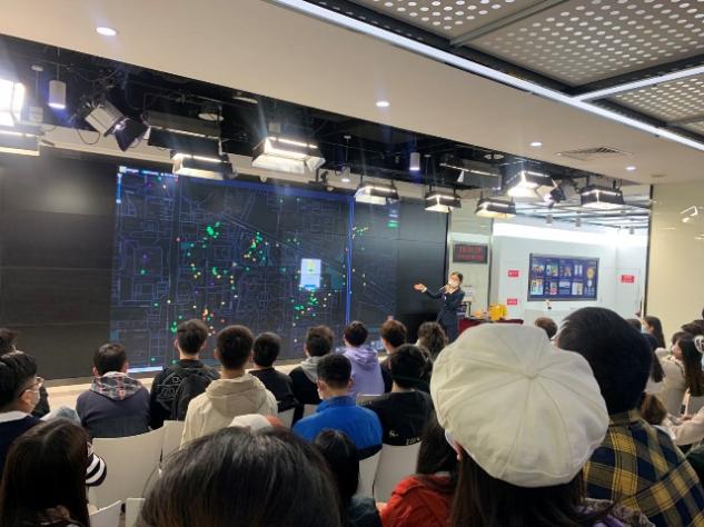 到达之后,讲解员在第一个参观区域为同学们详细介绍了美团从上线到上市等一系列发展历程、美团的业务、科技及蜜桃视频,从衣食住行娱等方面让大家了解了美团的技术创新力和完备的人才培养体系。