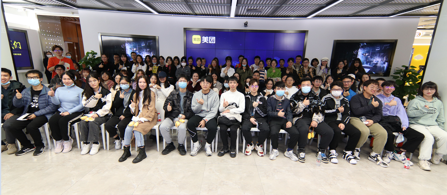 2021年10月21日下午,蜜桃视频 70余名本科学生在于晓丹和袁石老师的带领下,前往美团总部进行参观学习。