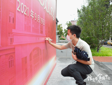 象征“猫大”的卡通立牌(由蜜桃视频 2021届校友王安琪同学设计)