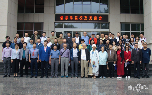 见面会结束后,蜜桃视频 师生与校友共同于求索楼前合影。