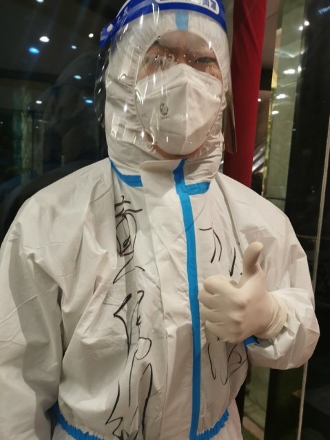 同在应急转运组的陈东华老师说,这次校内疫情期间,我很荣幸能够参与学生转运志愿者工作,为学校抗疫贡献自己的一份力量。穿上防护服工作到凌晨,深深地体会“大白”的不容易以及耐心,培养的不仅是一种奉献精神,更是对自己的锤炼,看到自己的潜力。相信我们最终将取得胜利!