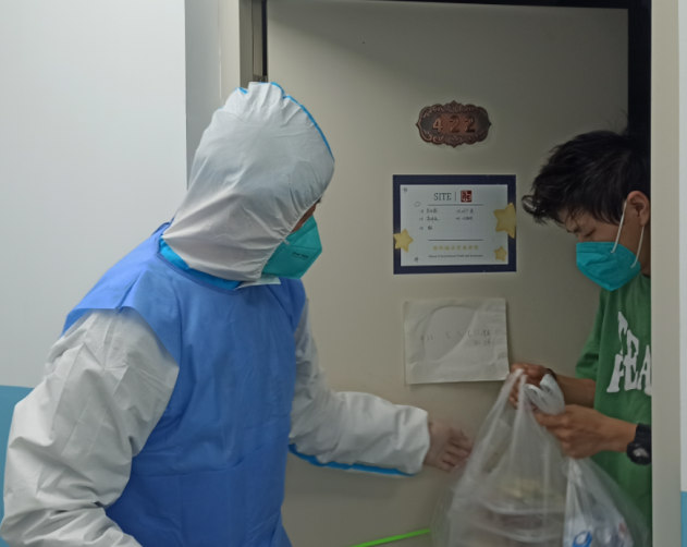 在汇康公寓的志愿者王淏轩老师说,11月15日晚,汇康楼发现“十混一”异常,作为汇康楼网格化志愿者的我第一时间回到学校,在连续工作的十几天里,经历过在楼梯间过夜的寒冷,也经历过一次次搬运物资后的闷热,但每天听到汇康楼的学生核酸全部阴性的消息,每天处在汇康公寓的志愿者同事们的温馨氛围中,便一点都不觉得辛苦了,这是一次毕生难忘的经历。