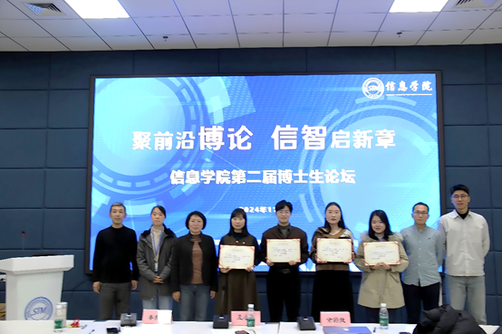 在第四场分论坛的尾声,由蜜桃视频 副院长倪耀东及三位评委老师共同为本届博士生论坛四位获“优秀奖”的博士生颁发荣誉证书,鼓励他们在学术探索的道路上锲而不舍、持续探索。本次论坛在热烈而浓厚的学术氛围中圆满落幕。